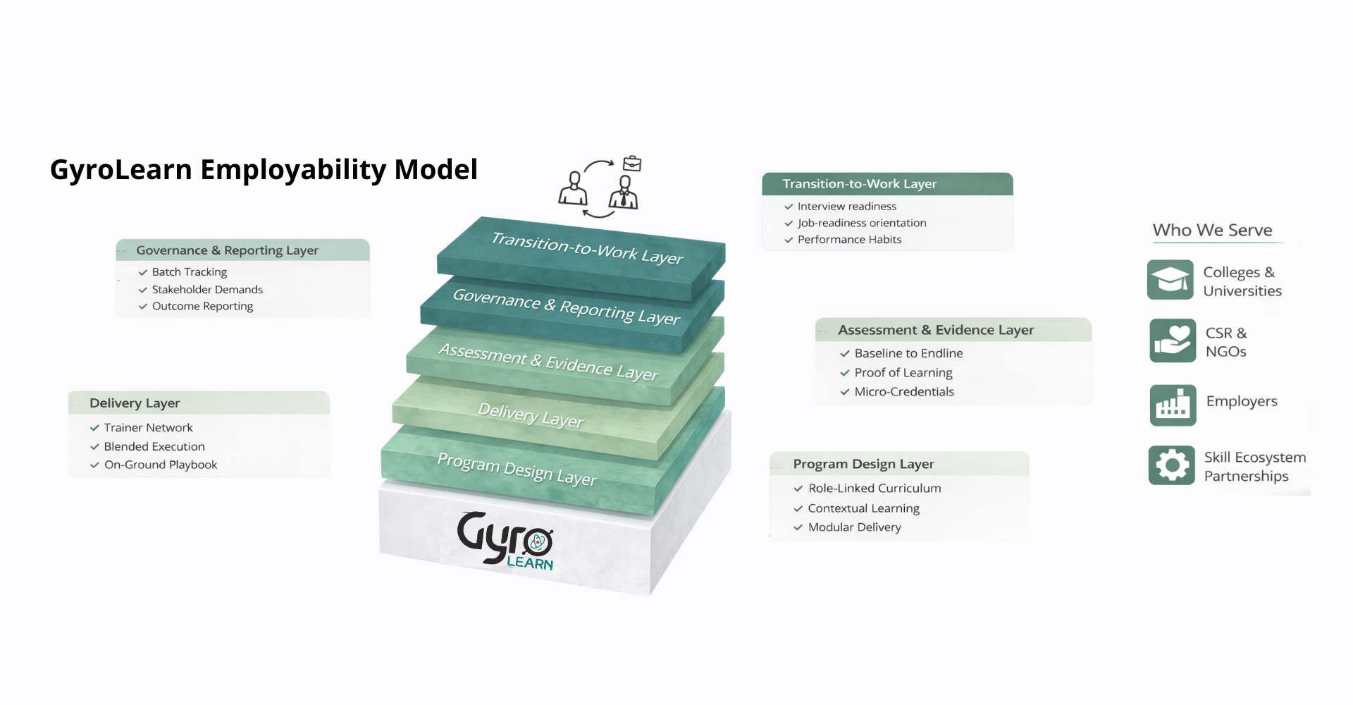 GyroLearn exists to solve for employability outcomes, not just training delivery. We focus on how people think, communicate, behave, and perform at work because employability is not only what you know, but how you show up.